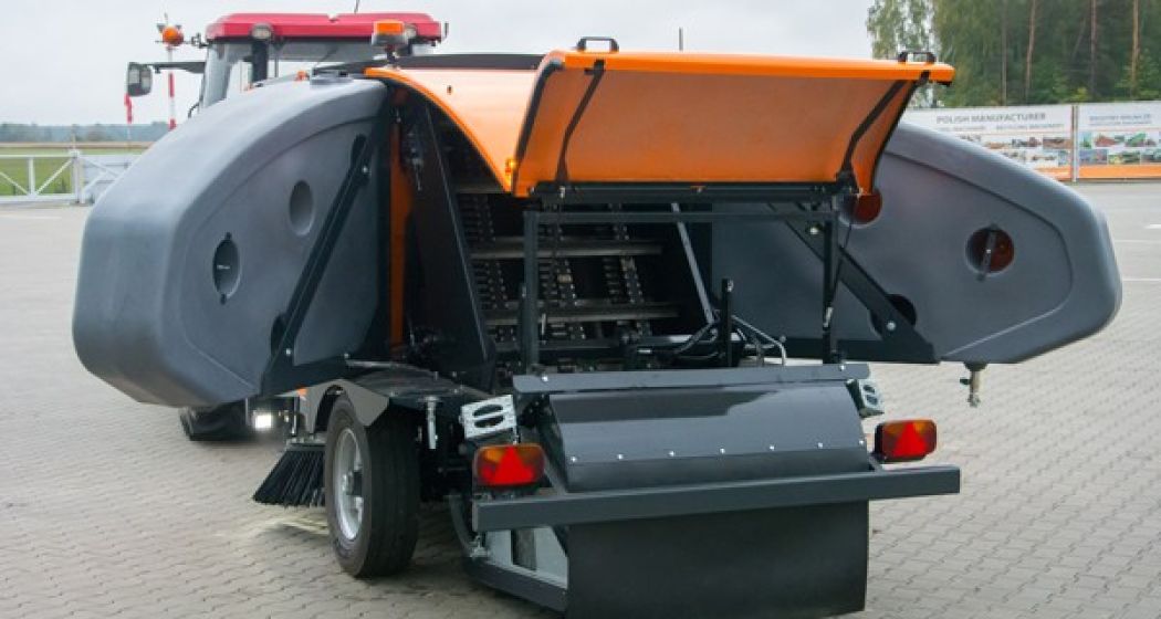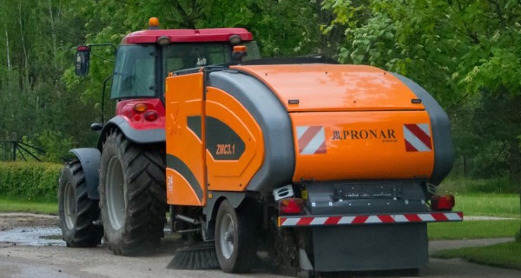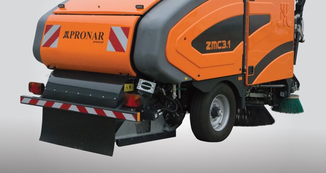 Подметально-уборочная машина PRONAR ZMC 3.1 – машина с механическим способом транспорта мусора. Две дисковые щётки и одна вальцевая щётка очищают поверхность. Дальше, мусор перемещается по скребковому транспортёру в бункер для загрязнений.