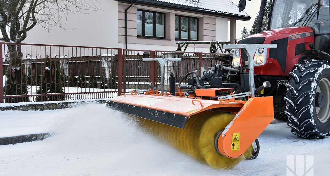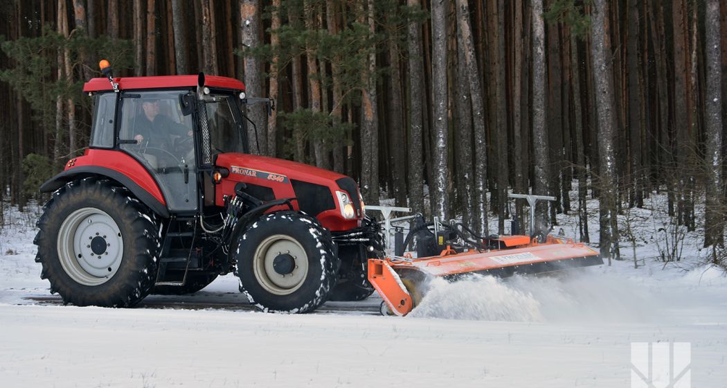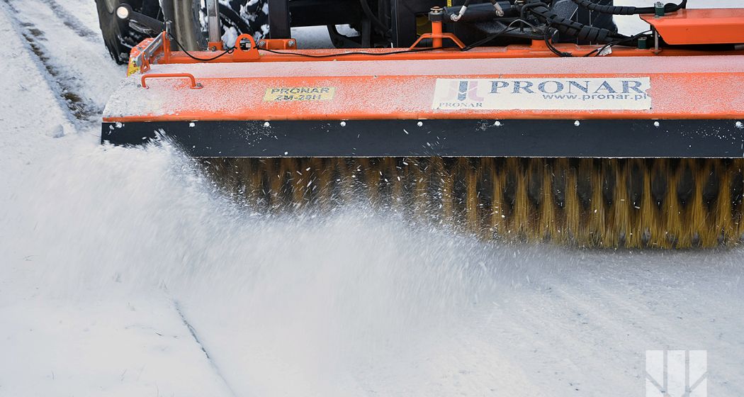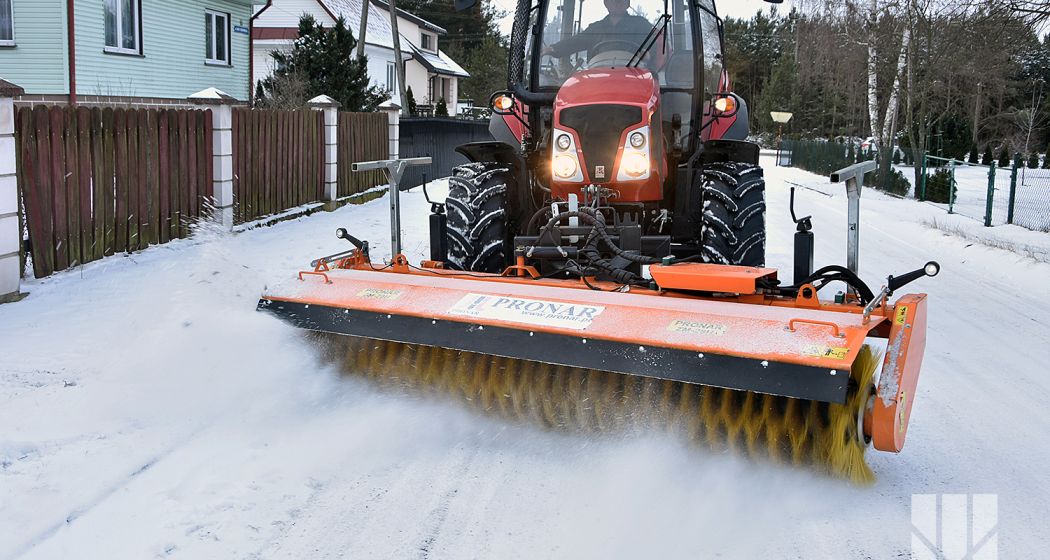 Снегоуборочная-подметальная машина PRONAR ZM-28H находит широкое применение при очистке поверхностей дорог, тротуаров и площадей, а также при технологической очистке грунта перед укладкой асфальта. Рабочим элементом этой машины является вальцовая щетка с горизонтальной осью вращения, управляемая гидравлическим двигателем, вмонтированная внутри вала. Рабочая ширина щетки составляет 2,8 м. Рабочая щетка состоит из сегментов (колец), накладных на металлический вал. По мере износа щетки, существует возможность опускания с помощью регулировки опорных роликов. Выбрасывание мусора или снега ограничено передней панелью, установленной ступенчато по высоте. Обслуживание техники облегчает пульт управления в кабине оператора. Снегоуборочная-подметальная машина PRONAR ZM-28H это машина навесная спереди носителя (трактор, фронтальные погрузчики, специальные транспортные средства), оснащенный устройством для подъема, нп: ТСН.