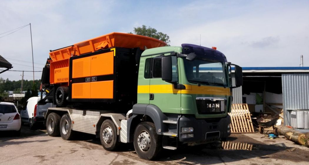 Низкоскоростный измельчитель Pronar предназначен для предварительной обработки различных видов материалов: коммунальных и строительных отходов, поддонов, мусора, остатков рубок деревьев, корней и габаритных материалов. Важным преимуществом машины является ее мобильность и способность быстро перемещаться в любое место. Транспорт машины выполняется с использаванием грузовиков или прицеп. Машина оснащена дизельным двигателем мощностью 310 кВт. Измельчение осуществляется двумя синхронно работающими измельчительными валами в рабочей камере. Пользователь шредера имеет возможность выбирать программу управления в зависимости от типа входного материала. Рабочие части изготовлены из износостойких материалов, что обеспечивает долгую и бесперебойную работу.