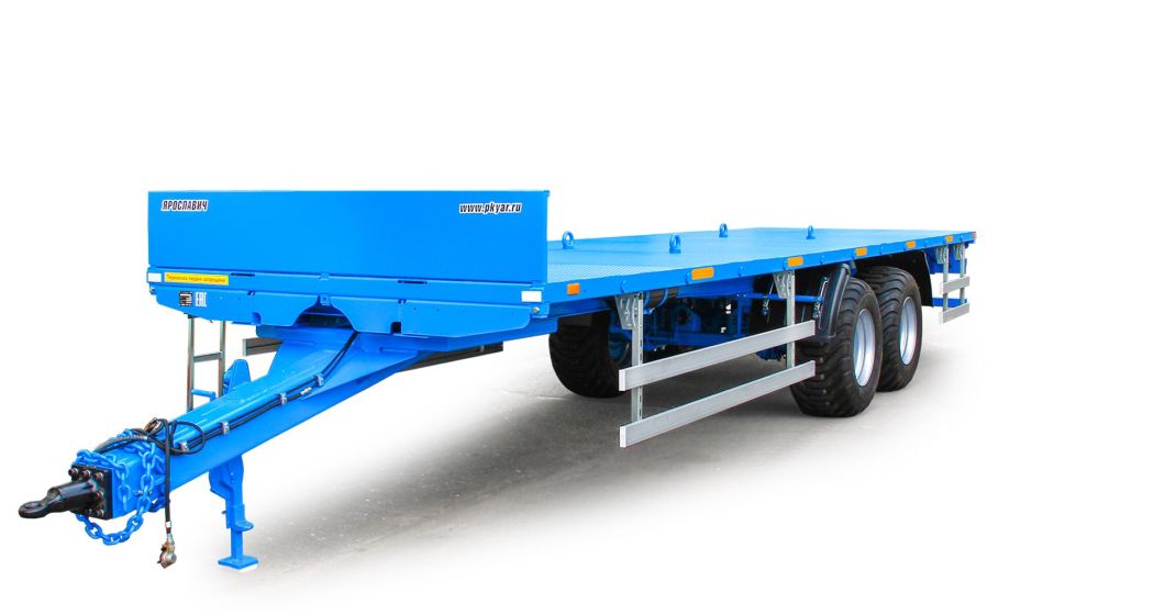 Полуприцеп-платформа универсальный ППУ-15 предназначен для транспортировки различных грузов, в т.ч. овощные контейнеры, ящики с фруктами, рулоны и тюки соломы и сена, сформированные пресс-подборщиками, емкости для жидкости в обрешетке (еврокубы), длинномерные материалы (бревна, доски, трубы, электрические опоры), контейнеры с домашней птицей, пчелиные ульи и др. по всем типам дорог и в полевых условиях.